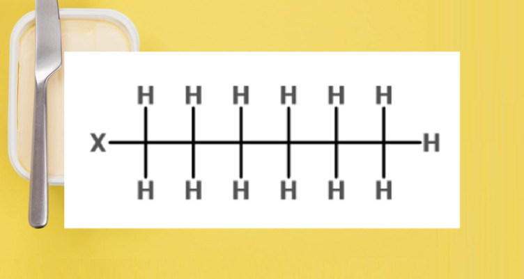 Take a look at this diagram of a saturated fat molecule below — there are no open spaces, or “binding sites,” where a free radical can enter and damage the fat. Every seat at the table is occupied.